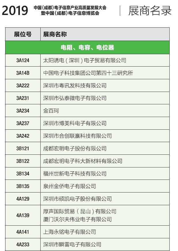 2019成都電子展 會刊 展商名錄