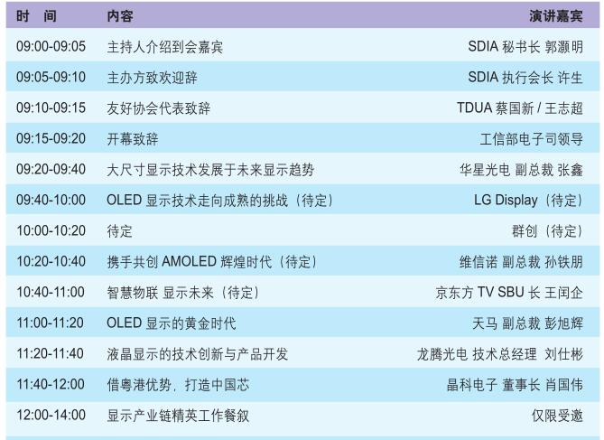 時間:2019年4月10日 上午地點:深圳會展中心6 層 桂花廳主辦單位:深圳市平板顯示行業協會未來顯示無處不在的廣闊應用前景,不斷刺激著顯示技術的更迭和產業規模的發展。經過歷年的發展,中國已經成為全球顯示行業的重要推動力量,在技術與產品迭代的關鍵時期,是創新技術還是優化產業布局,中國未來的顯示強國之路面臨著重大的挑戰與機遇。演講嘉賓會議日程(論壇資料截至時間:2019年3月31日。日程安排以當天為準,解釋權歸組委會。)