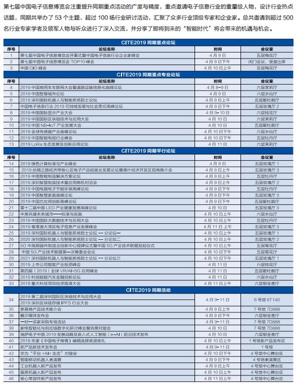 開幕式及訓館活動重點活動介紹CITE2019同期論壇一覽創新評選參展企業展會觀眾媒體報道