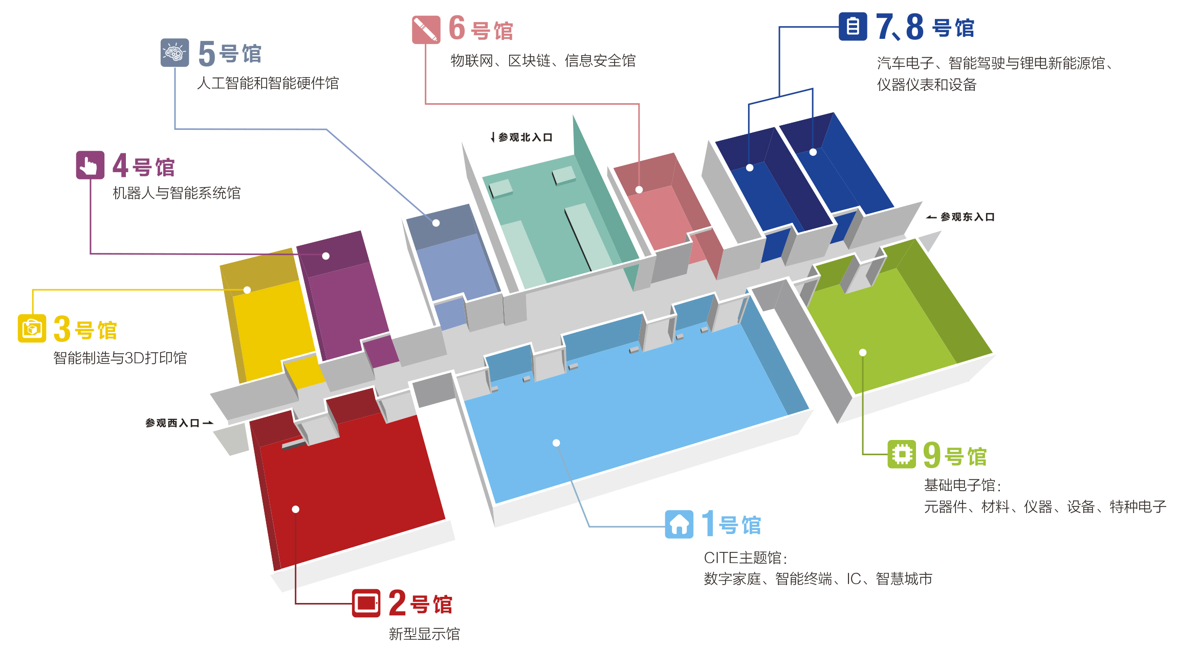 1號館 CITE主題館:智慧家庭展區、智能終端展區、人工智能、5G、大數據、信息安全、IC展區
