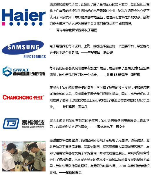 長虹集團(tuán)、九州集團(tuán)、重慶富士康、成都富士康、重慶格力電器、重慶軍工產(chǎn)業(yè)集團(tuán)有限公司、四川錦江電器、成都飛機(jī)工業(yè)集團(tuán)(132廠)、中航凱天(161廠)、成飛電子科技公司、華豐集團(tuán)、成都京東方、成都天馬微電子、成都泰格微電子、成都先進(jìn)功率半導(dǎo)體、成都康特電子、成都八九九科技、仁寶電腦、東方電氣等企業(yè)參觀團(tuán)